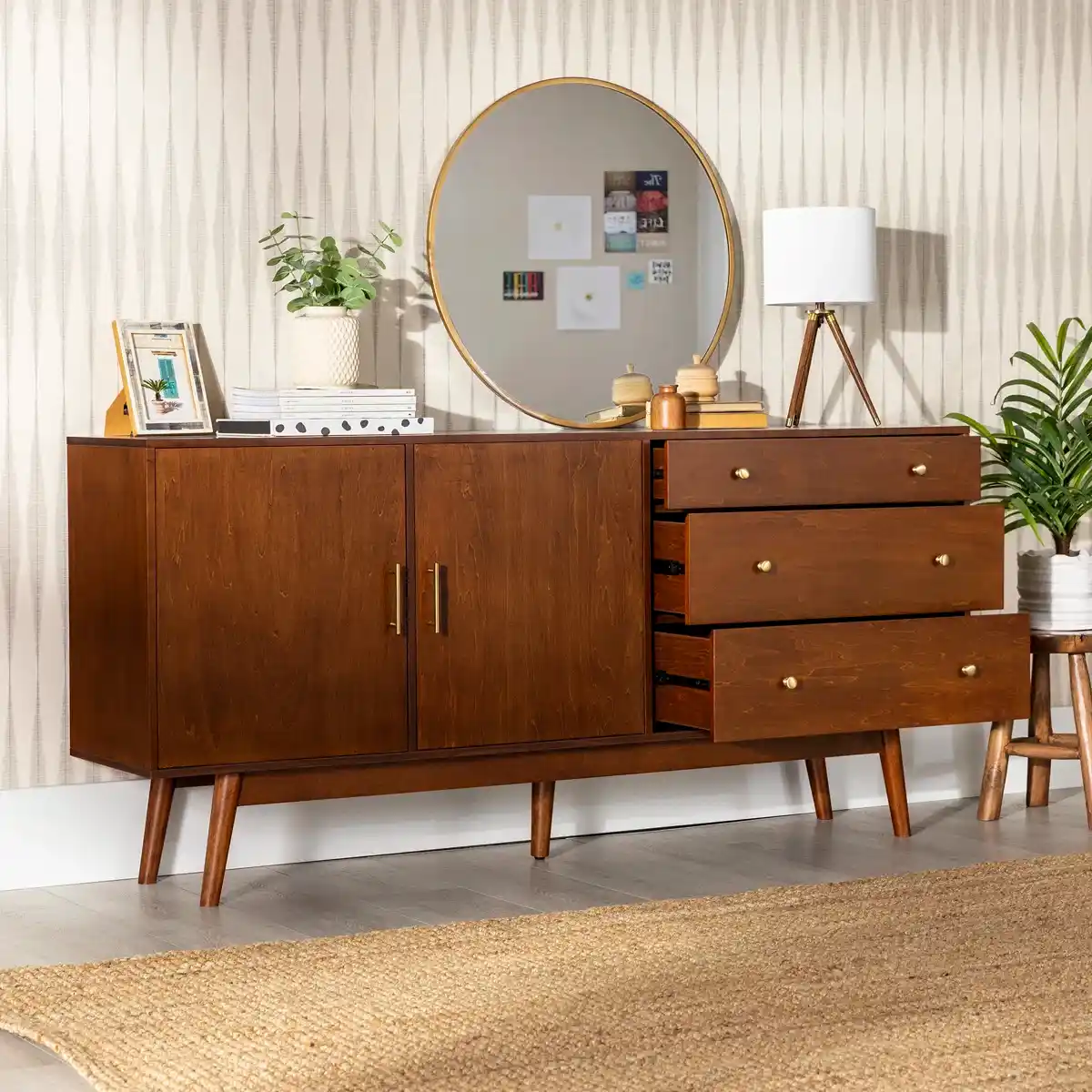 سه کشوی جادار + دو درب بزرگ، یعنی فضای ذخیرهسازی کافی برای ظروف پذیرایی، مدارک یا هر چیزی که نمیخوای در دید باشه.