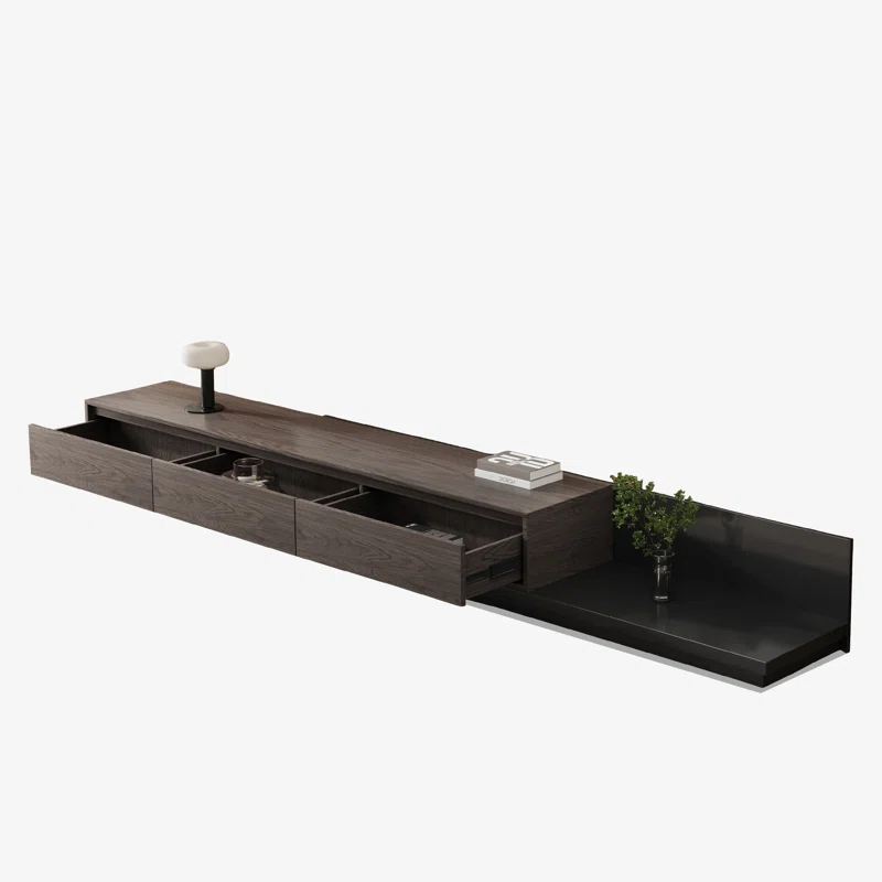 طول این میز در حالت بسته 150 سانتی متر و در حالت باز 300 سانتی متر است اما شما میتوانید رنگ و ابعاد میز را به دلخواه و بنا به اینچ تلویزیون خود تغییر دهید.